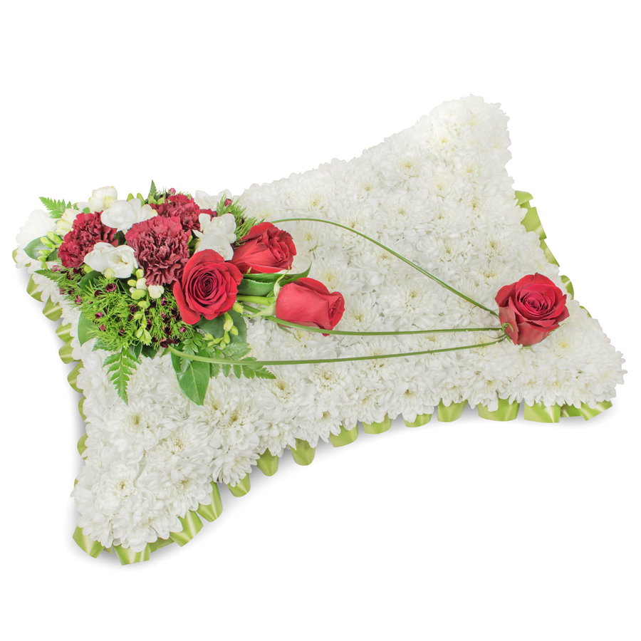 Send a message of heartfelt compassion with our Heavenly Comfort Floral Tribute, a bouquet designed to console and inspire. Featuring a graceful mix of white chrysanthemums, red roses, serene white freesias, intense dark red carnations, delicate dianthus, and soothing bear grass, every flower is hand-picked to ensure it meets the highest standards of freshness and beauty.